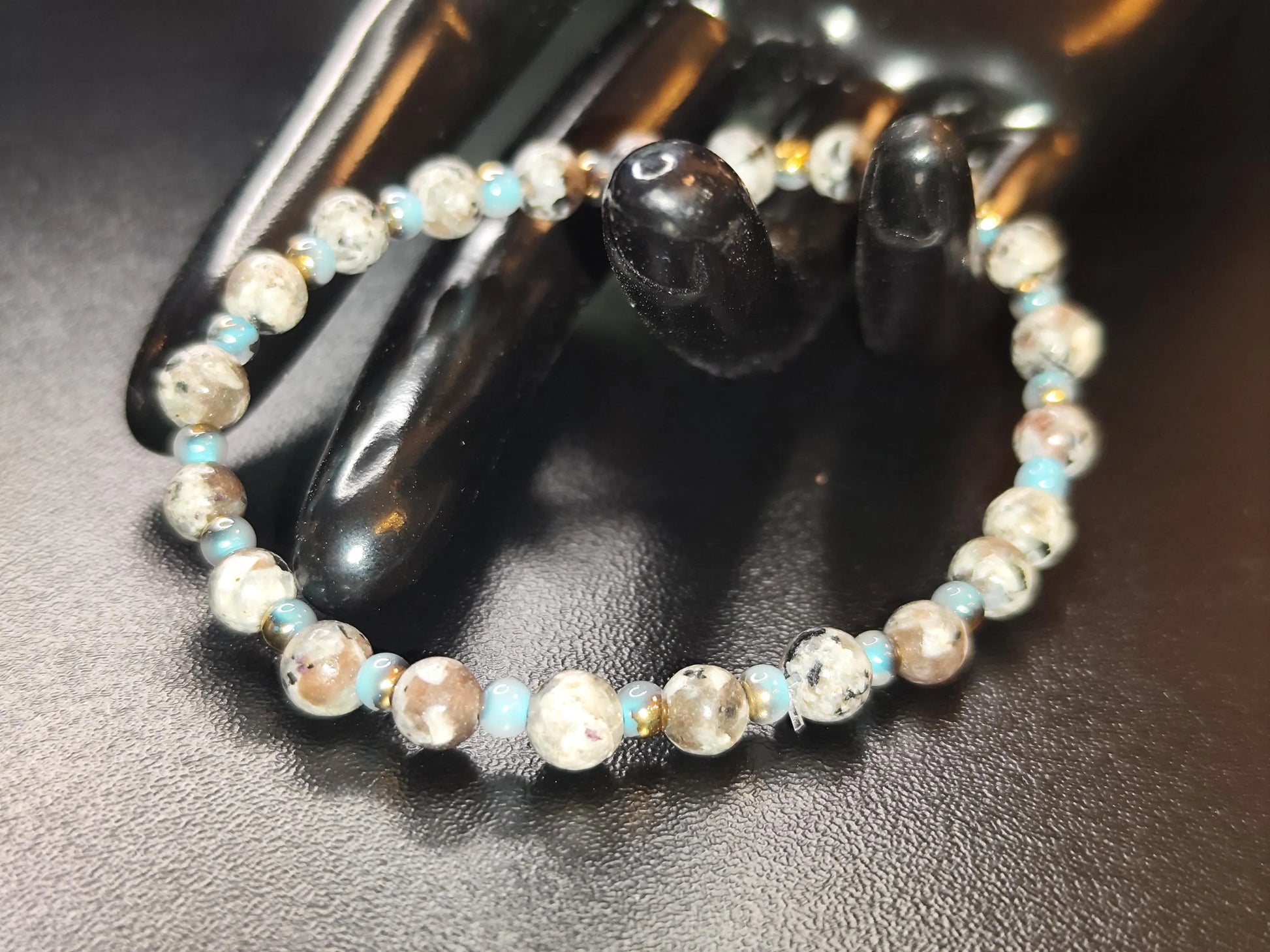 Yooperlite bracelet with blue glass beads | 6mm natural stone jewelry | Handmade