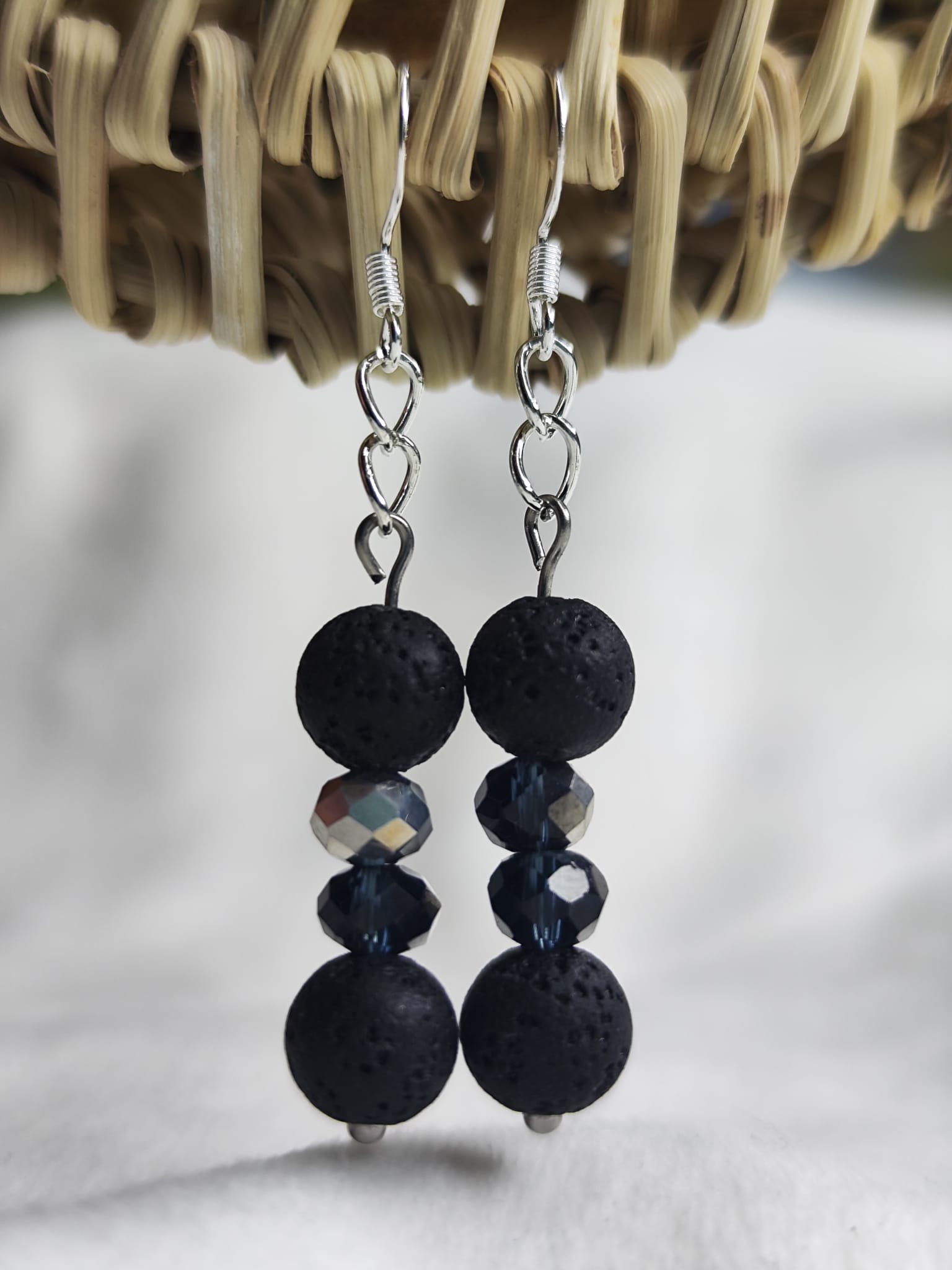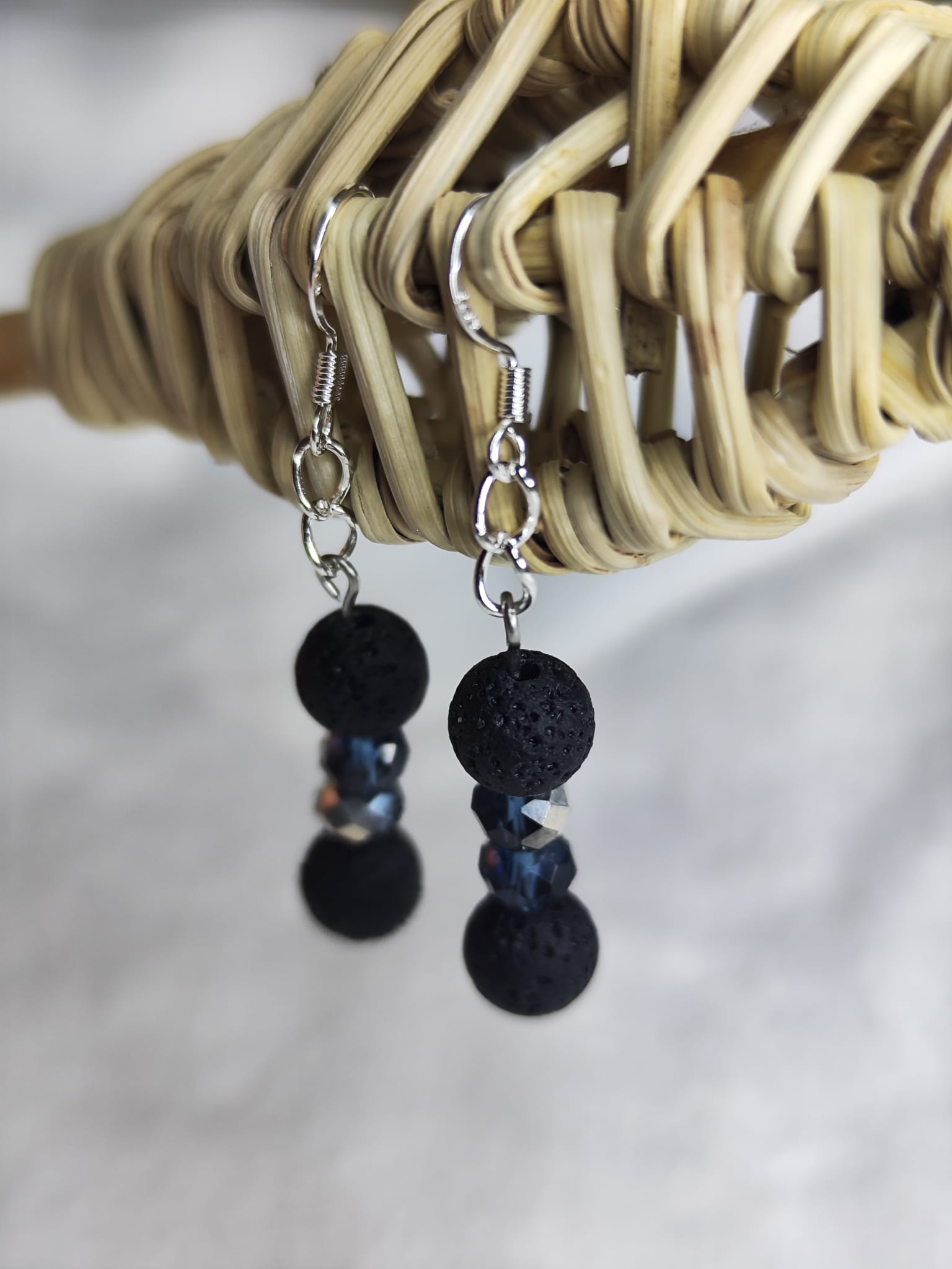 Elegantes Schmuck-Set aus Lavastein & Glasschliffperlen – Handgefertigt mit S925 Silber