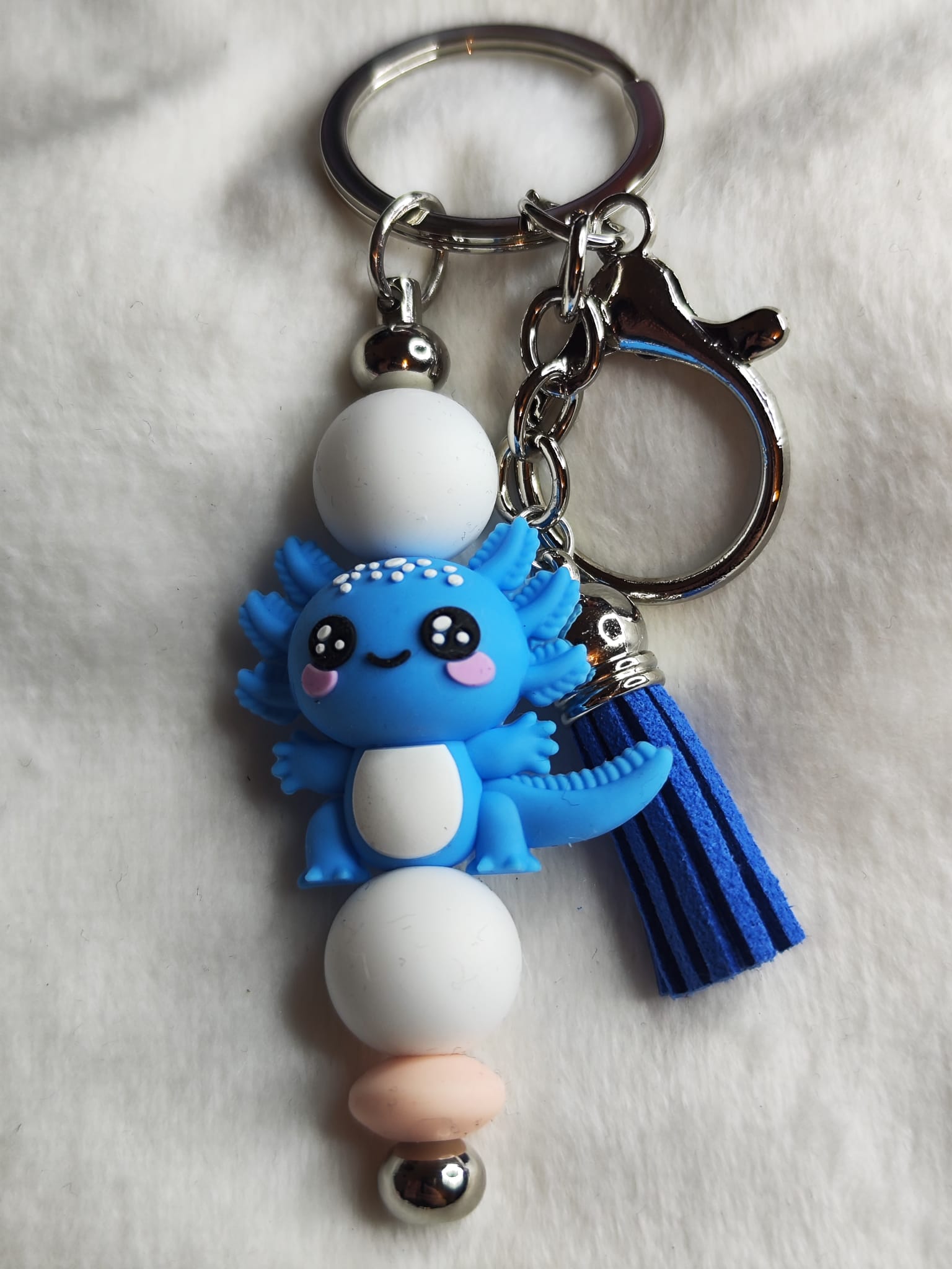 verschiedene Süße Axolotl-Schlüsselanhänger – Handmade – Silikonperlen & Quaste